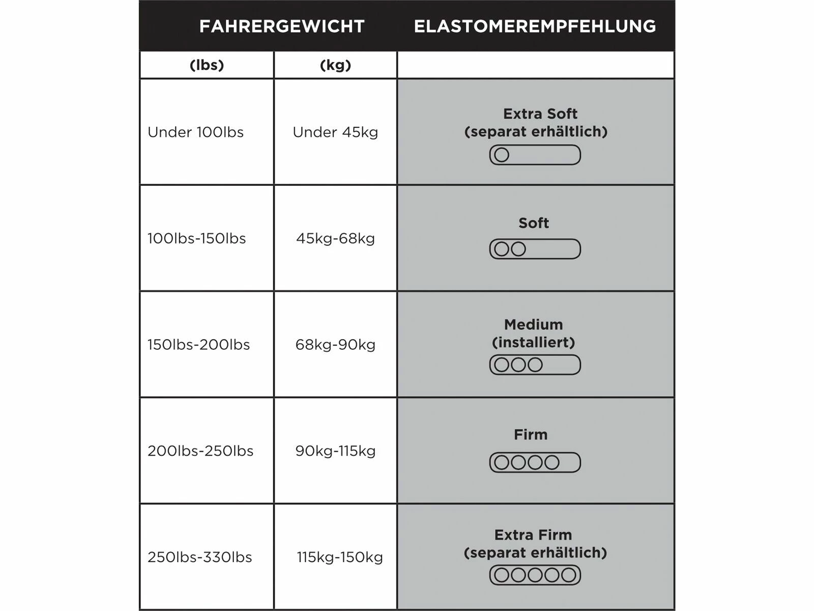 Die Cane Creek Thudbuster ST kann durch die Wahl des richtigen Elastomers auf verschiedene Fahrergewichte und Fahrstile abgestimmt werden.
