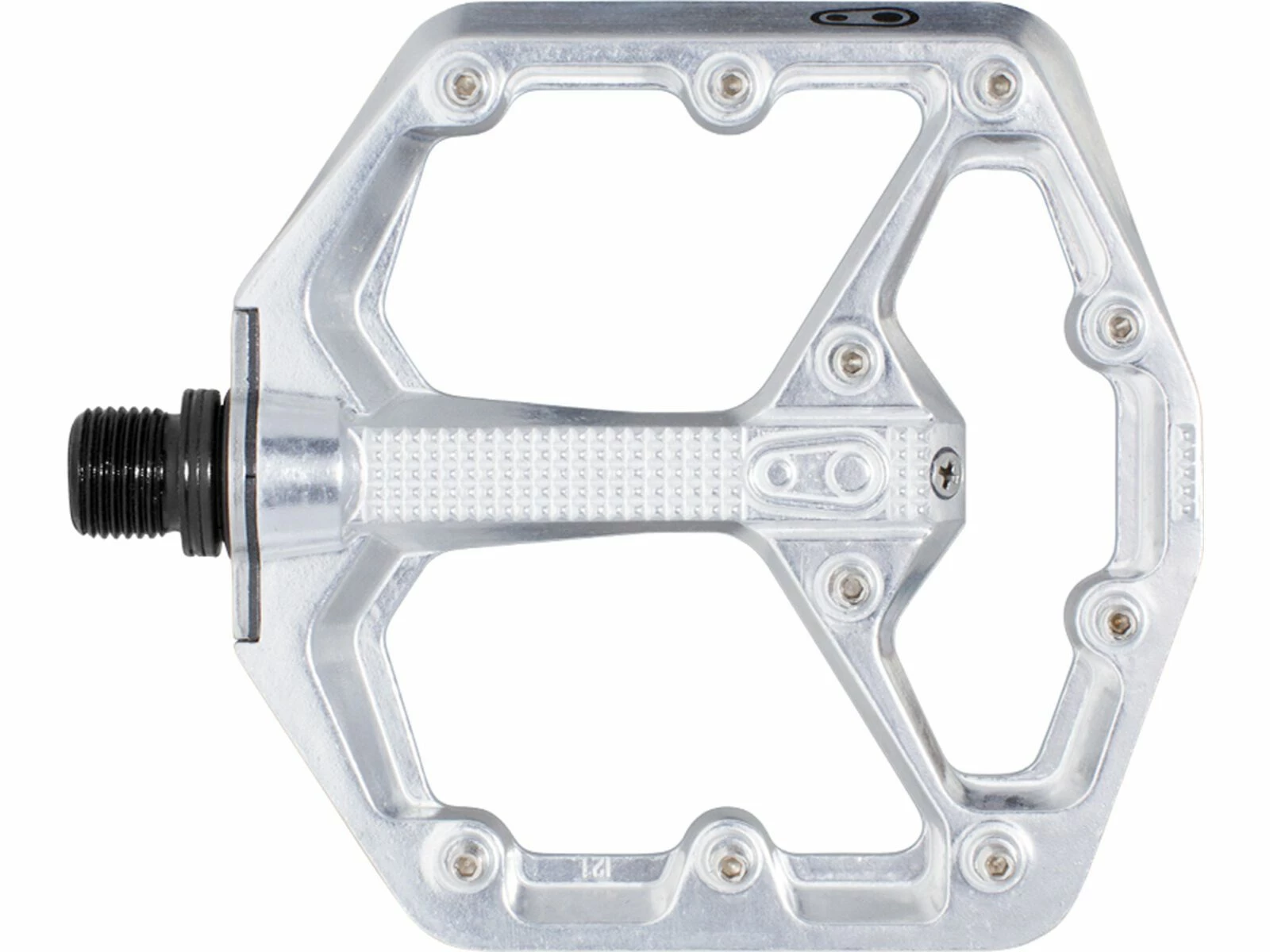Crankbrothers Stamp 7 ist ein flaches Plattformpedal mit konkaver Pedalplattform für All Mountain, Trail, Enduro, Freeride und Downhill, hier als Crankbrothers Silver Edition.