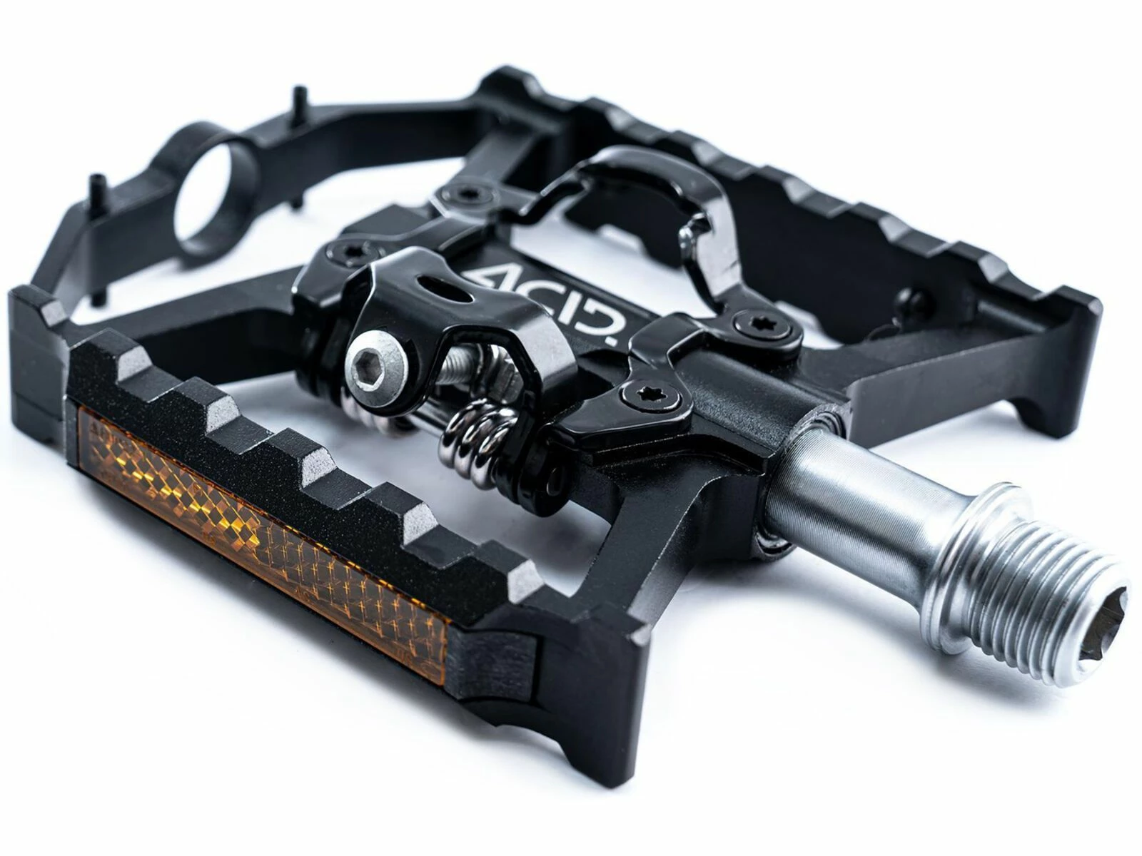 Wenn es im Alltag mal wieder hecktisch wird, muss ich mich auf den Halt meiner Pedale verlassen können. Das Acid Combo A4-IB Hybrid ist der perfekte Begleiter, egal ob auf meinem Trekkingrad oder dem schnellen Stadtflitzer. Durch die integrierten Reflektoren sehen sie besonders edel aus und machen bestimmt auch an deinem Rad eine gute Figur. Sollte es einmal sportlicher werden muss ich meine Pedale auch nicht wechseln – eine Seite Flat und die andere Seite Klick!