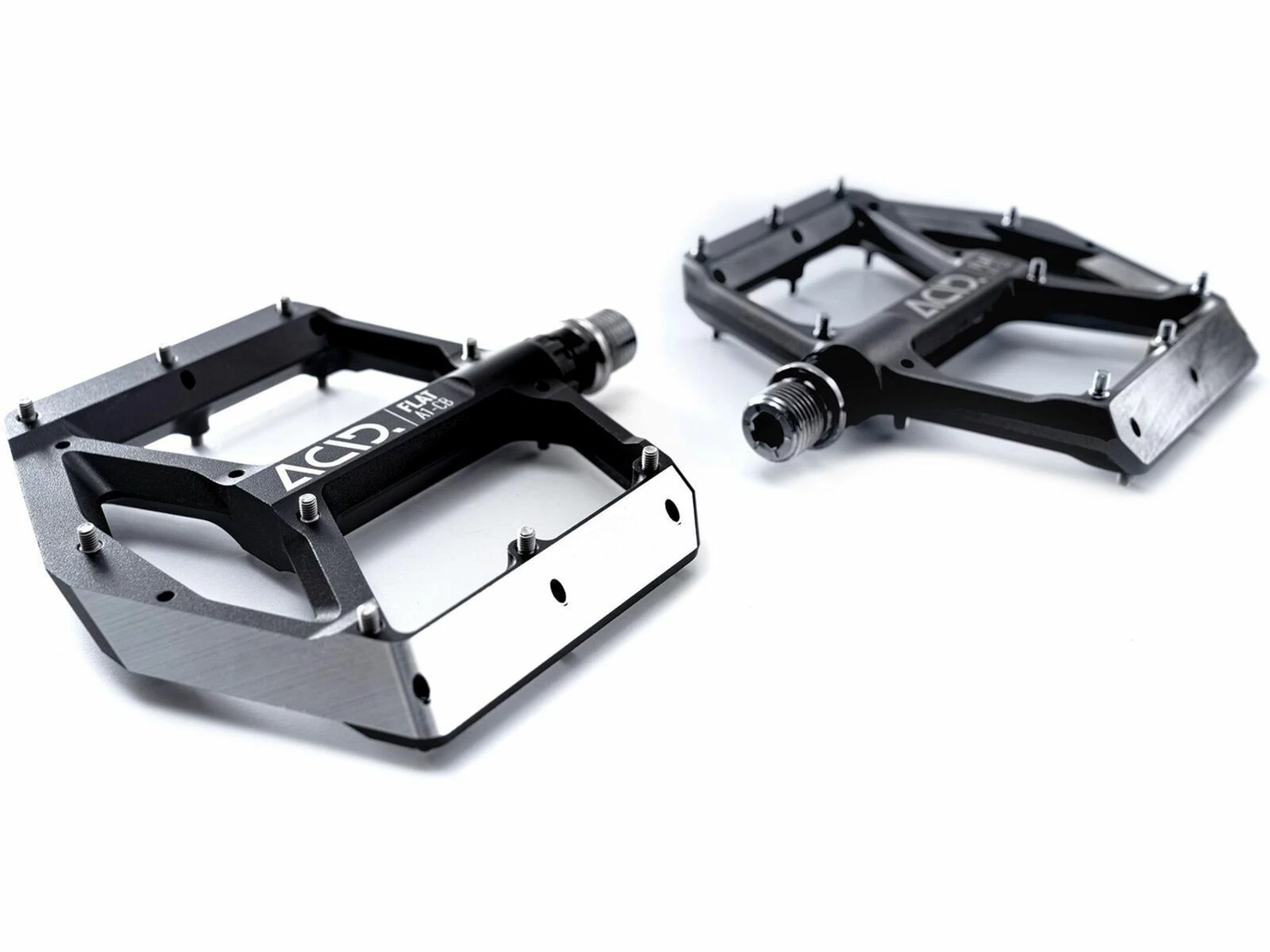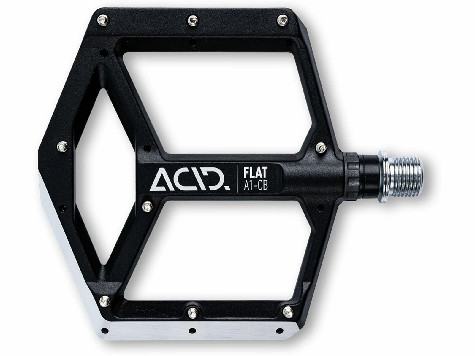 Hier im Bikepark kenne ich jeden Anlieger, jeden Sprung und jede Wurzel. Adrenalin pur! Auf meine Acid Flat Pedale kann ich mich dabei voll verlassen. Mit ihren haltbaren Pins und der großen Standfläche fühle ich mich auch im gröbsten Wurzelteppich sicher mit dem Bike verbunden und kann mich doch sofort davon lösen, wenn der Trick mal nicht so klappt wie geplant.