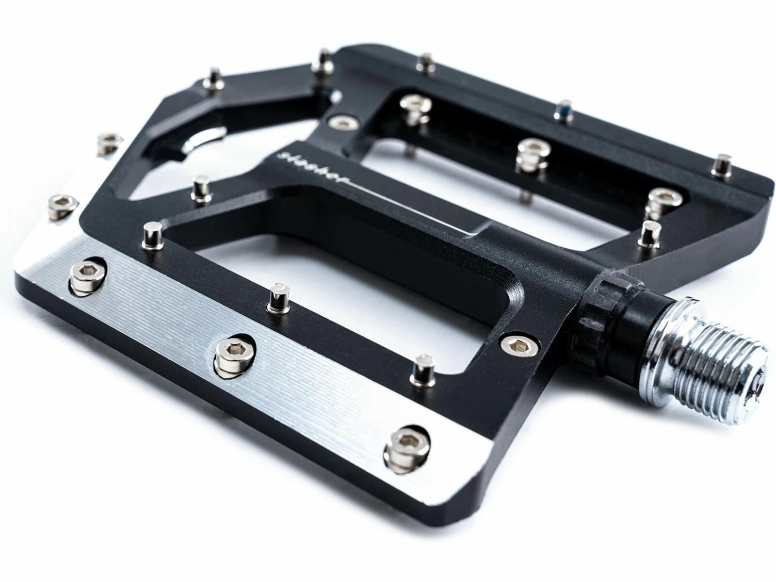 Hier im Bikepark kenne ich jeden Anlieger, jeden Sprung und jede Wurzel. Adrenalin pur! Auf meine Slasher Pedale kann ich mich dabei voll verlassen. Mit ihren einstellbaren Pins und der großen Standfläche fühle ich mich auch im gröbsten Wurzelteppich sicher mit dem Bike verbunden und kann mich doch sofort davon lösen, wenn der Trick mal nicht so klappt wie geplant.