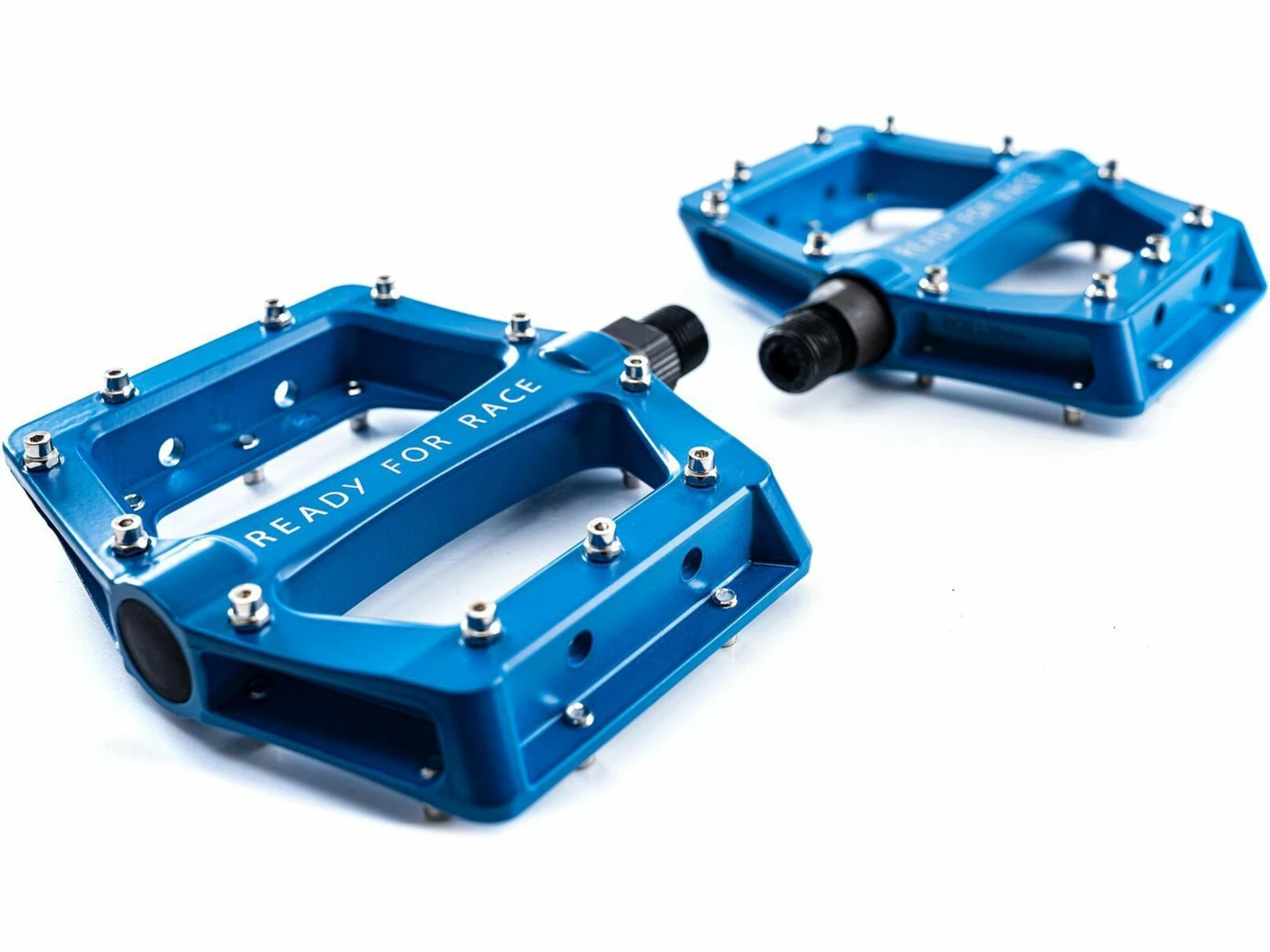 Die leichten Cube RFR Pedale Flat CMPT Pedale sind aus Aluminium hergestellt und werden mit einer CrMo-Achse verbaut. Die Anti-Rutsch-Pins sind austauschbar und bieten besten Halt am Fahrrad.