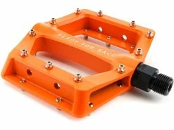 Die leichten RFR Flat CMPT Pedale sind aus Aluminium hergestellt und werden mit einer CrMo-Achse verbaut. Die Anti-Rutsch-Pins sind austauschbar und bieten besten Halt am Fahrrad.
