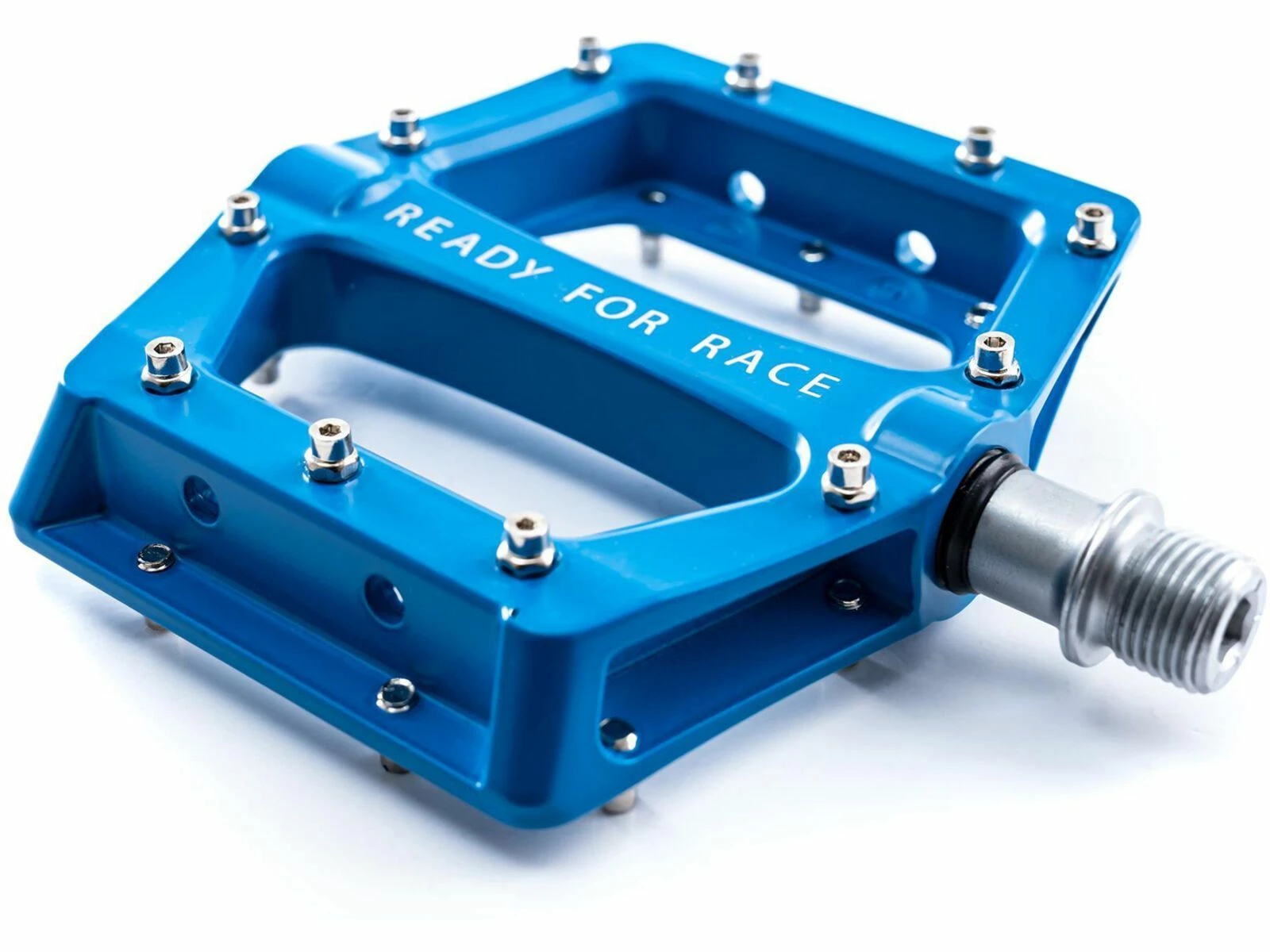 Die Cube RFR Pedale Flat Race sind leichte Flat-Pedale sind aus Aluminium hergestellt und werden mit einer CrMo-Achse verbaut. Die Pedale werden mit hochwertigen Lagern gelagert. Die Anti-Rutsch-Pins sind austauschbar und bieten besten Halt am Fahrrad.