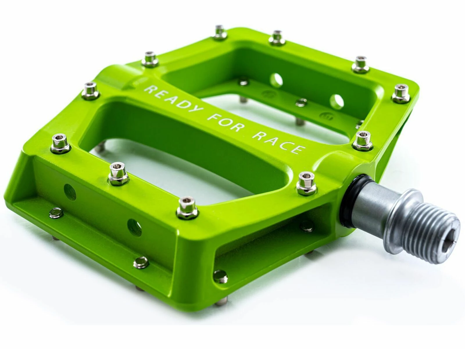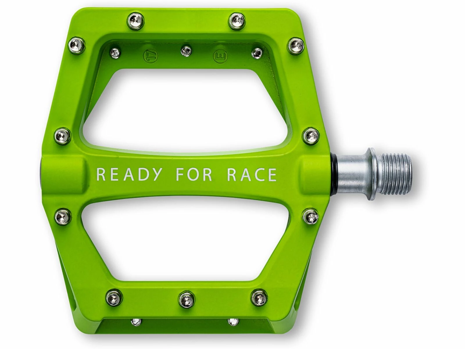 Die Cube RFR Pedale Flat Race sind leichte Flat-Pedale sind aus Aluminium hergestellt und werden mit einer CrMo-Achse verbaut. Die Pedale werden mit hochwertigen Lagern gelagert. Die Anti-Rutsch-Pins sind austauschbar und bieten besten Halt am Fahrrad.