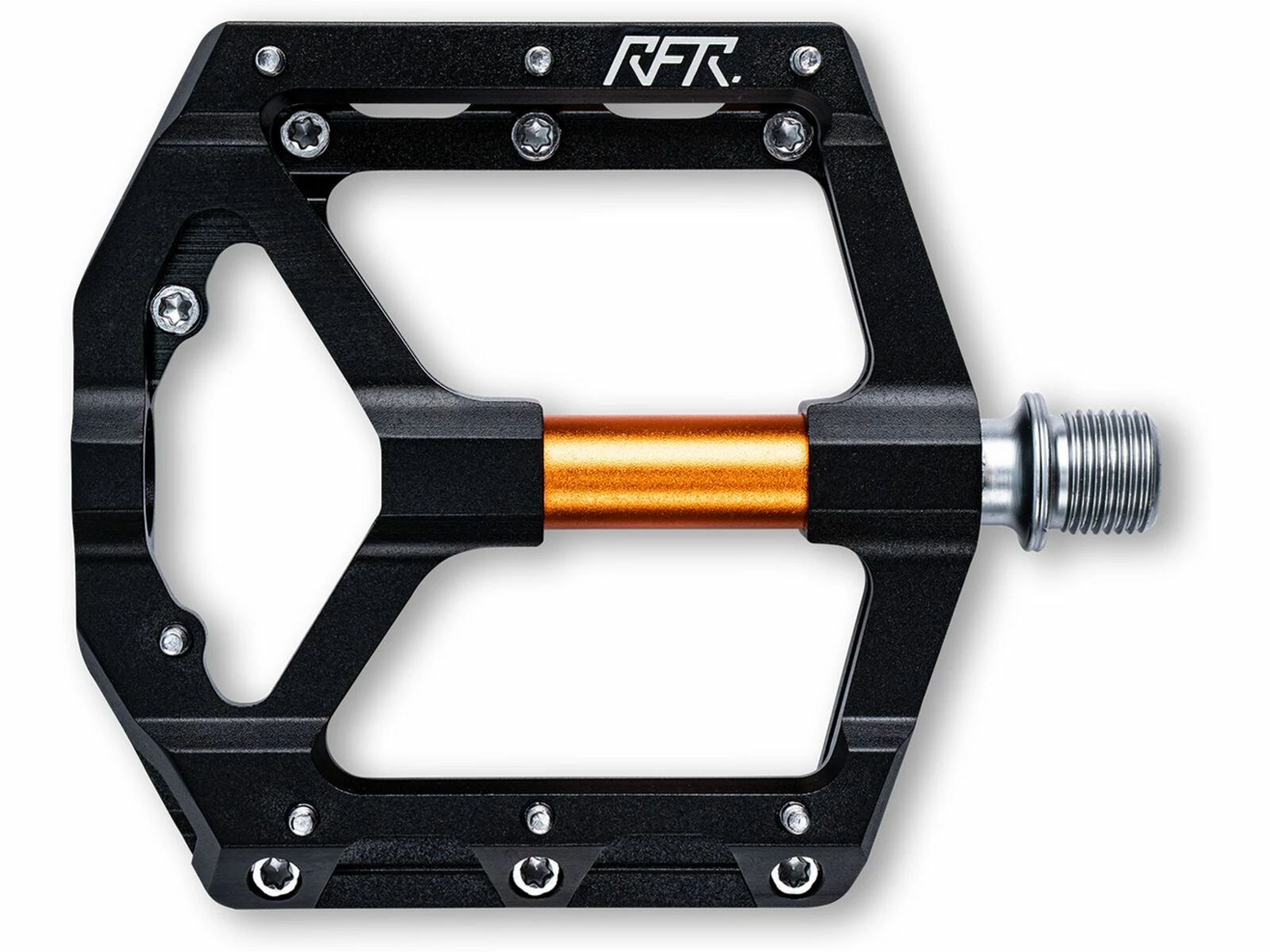 Die Cube RFR Pedale Flat SLT 2.0 sind hochwertige CNC-gefräste Flat-Pedale aus Aluminium mit einem aggressiv flachen Design. Die austauschbaren Pins und die große, griffige Standfläche geben besten Grip und Sicherheit. Mit CrMo-Achse für eine lange Lebensdauer.