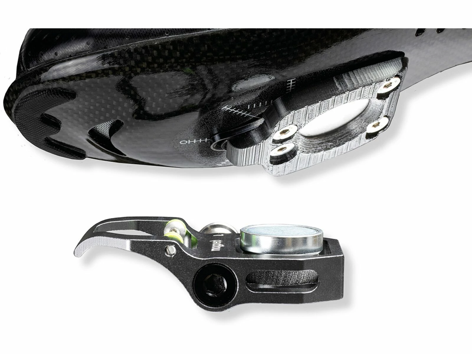 Hier mit 200 N Magnet für alle Gewichtsklassen ab ca. 45 kg. Du benötigst einen Rennrad Schuh mit 3-Loch Aufnahme.