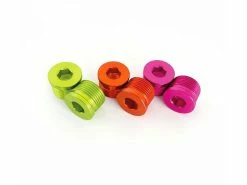 - Achs-Abdeckkappen in schwarz, orange, grün und pink