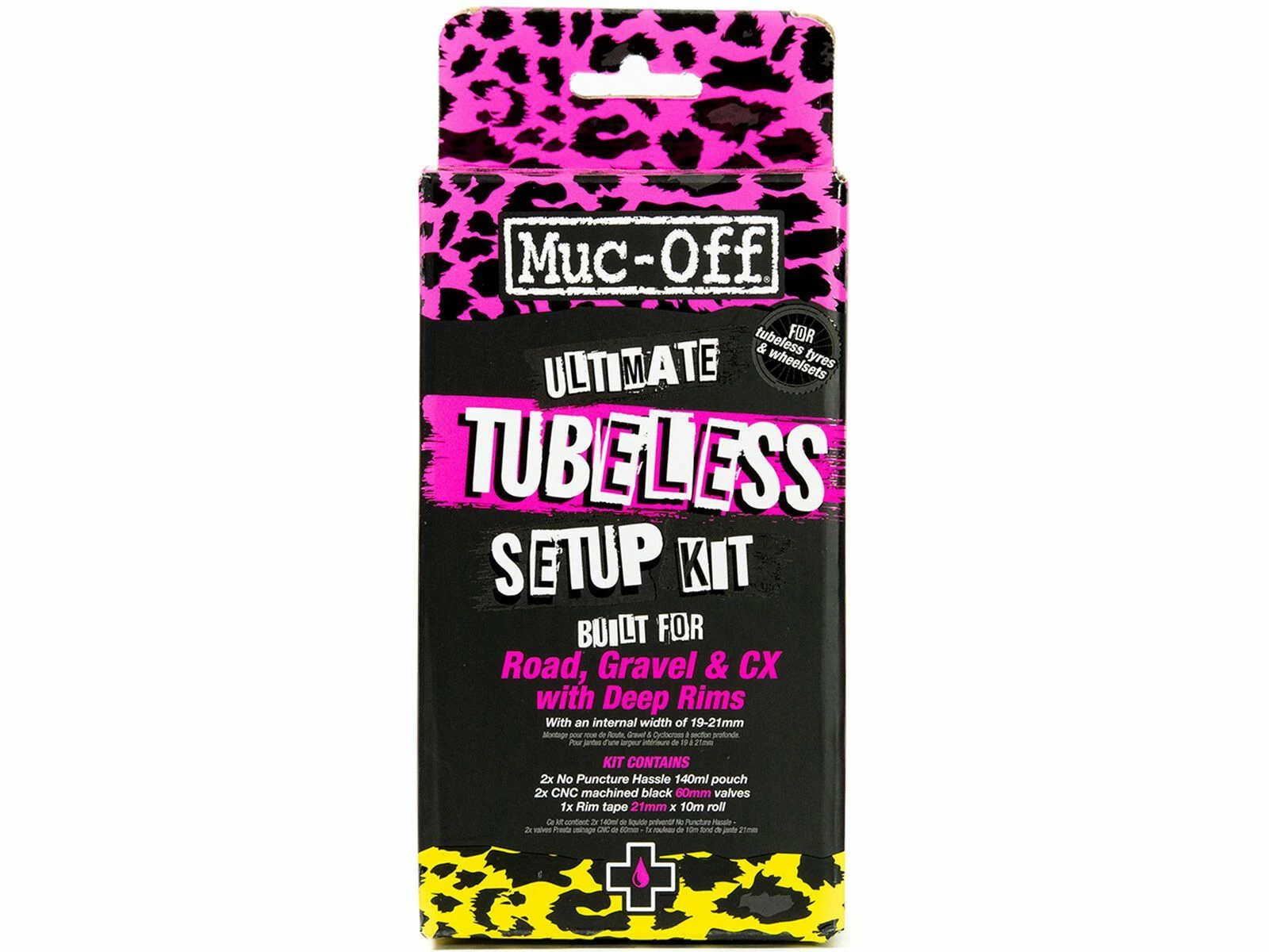 Das Muc-Off Ultimate Tubeless Kit enthält alles, was man braucht, um einen Tubeless-Laufradsatz aufzubauen und fahrbereit zu machen. Jedes Kit enthält ein Muc-Off Tubeless-Felgenband, Dichtungsflicken, 2 schwarze, CNC-gefräste Tubeless-Ventile und 2 Beutel mit No Puncture Hassle Tubeless Sealant. Das Road 60 mm Kit ist für tiefe Rennrad-, Gravel- und CX-Felgen mit einer Innenbreite von 19 – 21 mm und kommt mit 60 mm langen Tubeless-Ventilen.Features