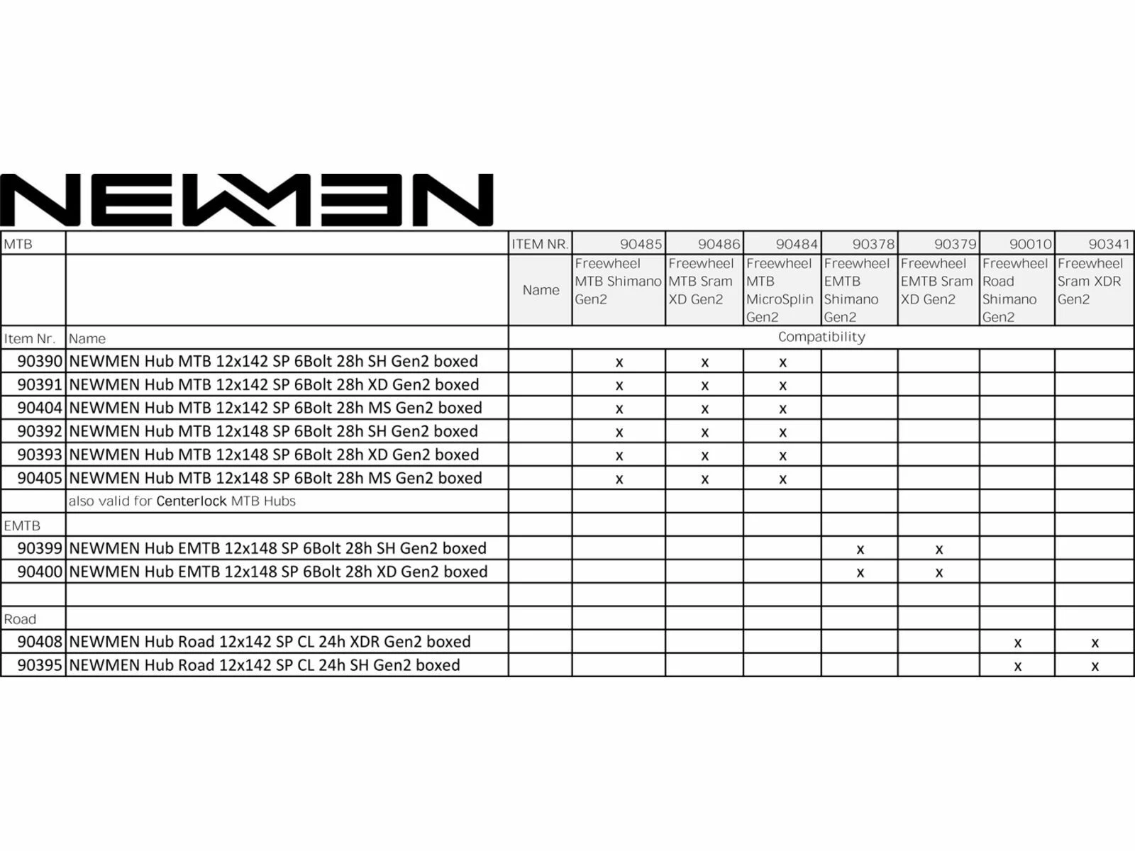 - eine Übersicht über die Kompatibilitäten mit Newmen Laufrädern findest du auch in der Übersicht (letztes Produktbild)