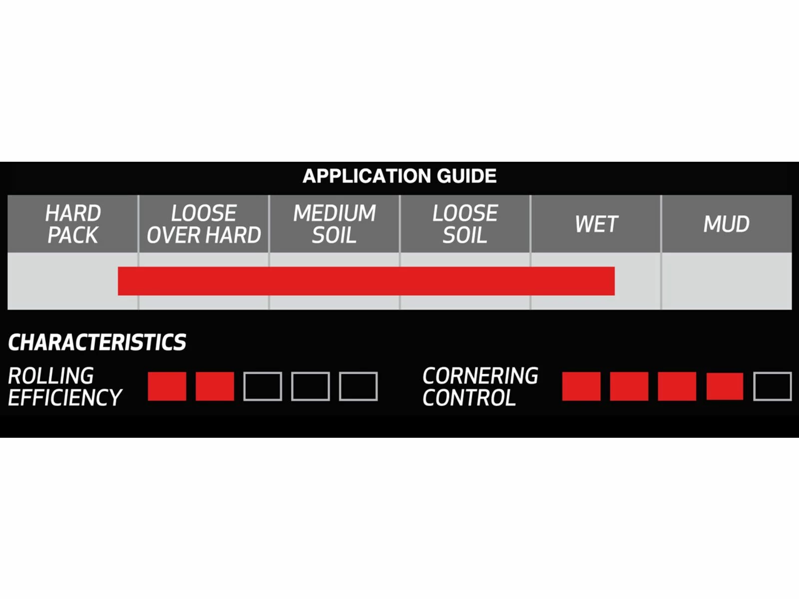 - Dual Compound – 55a/45a: Dual-Compound Mischung für beste Traktion und noch mehr Grip gepaart mit guten Rolleigenschaften und langer Lebensdauer; weicher 55a Gummi an den Mittelstollen für viel Grip und gute Rolleigenschaften und weicher, grippy 45a Gummi an den Seitenstollen für ausgezeichneten Kurvenhalt