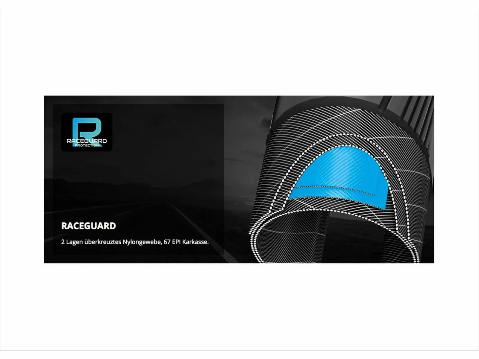 - RaceGuard: doppelt gelegtes Gewebe unter der Lauffläche; idealer Pannenschutz, wenn ein Reifen vor allem schnell und leicht sein soll; rundum SnakeSkin-Gewebe (leichte und flexible Gewebelage auf der Seitenwand macht den Reifen unempfindlich gegen seitliche Verletzungen)
