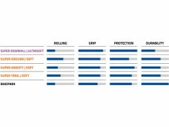 - Super Gravity: Da, wo sich nicht jeder hintraut. Wo Fahrer und Strecke dem Material alles abverlangen. Wo die Bikes viel Federweg haben. Genau da ist das Revier der Reifen mit Super Gravity Konstruktion. Durch die Turn-Up Konstruktion bleibt der Reifen trotzdem ungewöhnlich flexibel für das besonders geschmeidige Fahrgefühl. Tubeless Easy.
