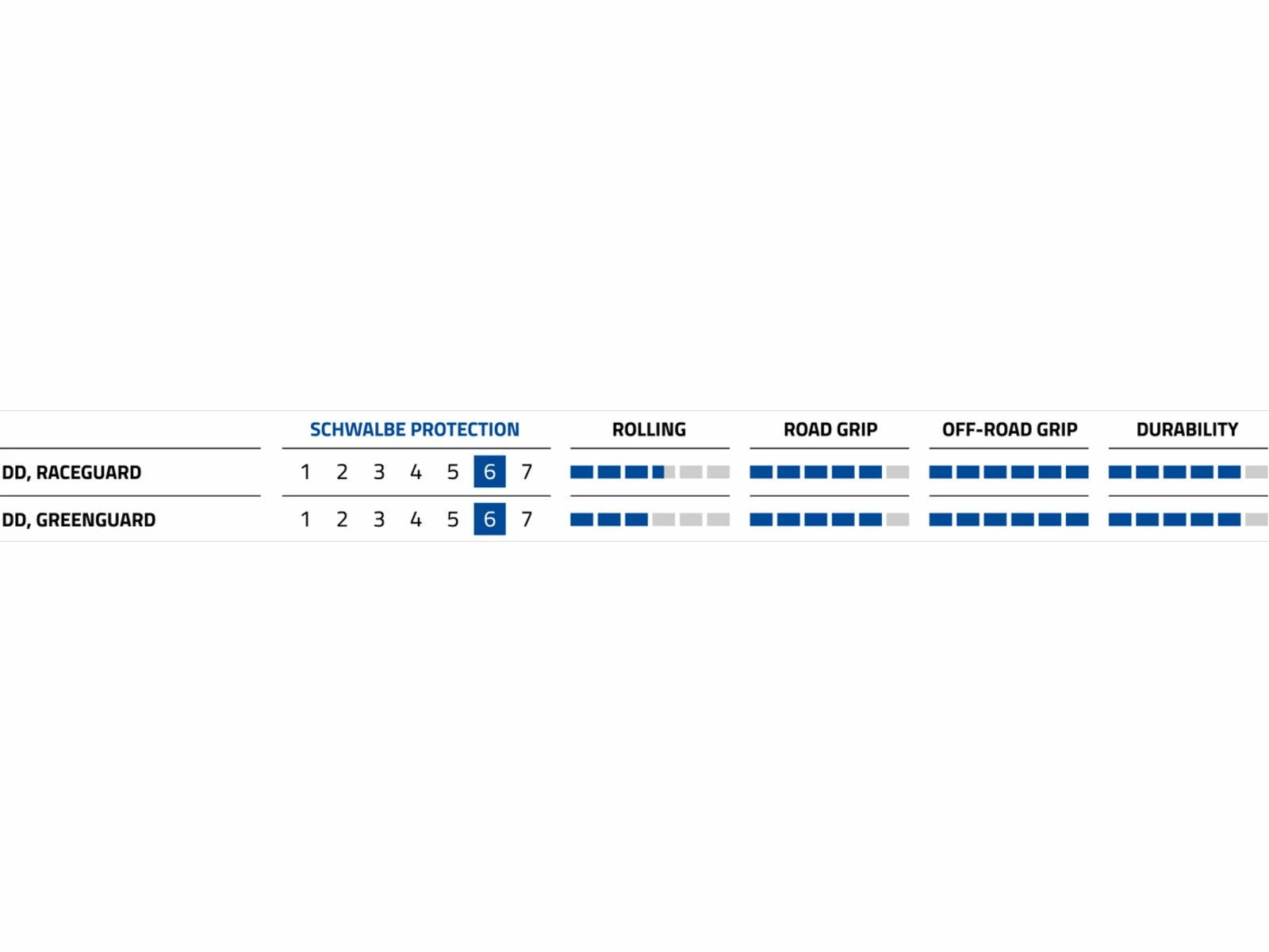 - Double Defense RaceGuard: Extra sicher durch kombinierten Pannenschutz unter der Lauffläche und an den Seitenwänden. Aufbau – Lauffläche: Pannenschutzgürtel aus zwei Lagen doppelt gelegtem Nylongewebe / Seitenwände: Snake-Skin Gewebe