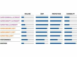 - Super Downhill: Für die Mutigsten und Aggressivsten. Für die, denen kein Sprung zu krass, keine Abfahrt zu steil und kein Hindernis zu schroff ist. Gemacht für den Downhill Weltcup. Super Downhill steht wie keine andere Konstruktion für kompromisslose Stabilität und Performance. Die massivste und stabilste (Super) Konstruktion ist doppellagig. Sechs Karkassenlagen schützen die Lauffläche auch bei sehr niedrigen Luftdrücken. Durch den sehr stabilen Faltkern sind die Reifen auch Tubeless Easy.