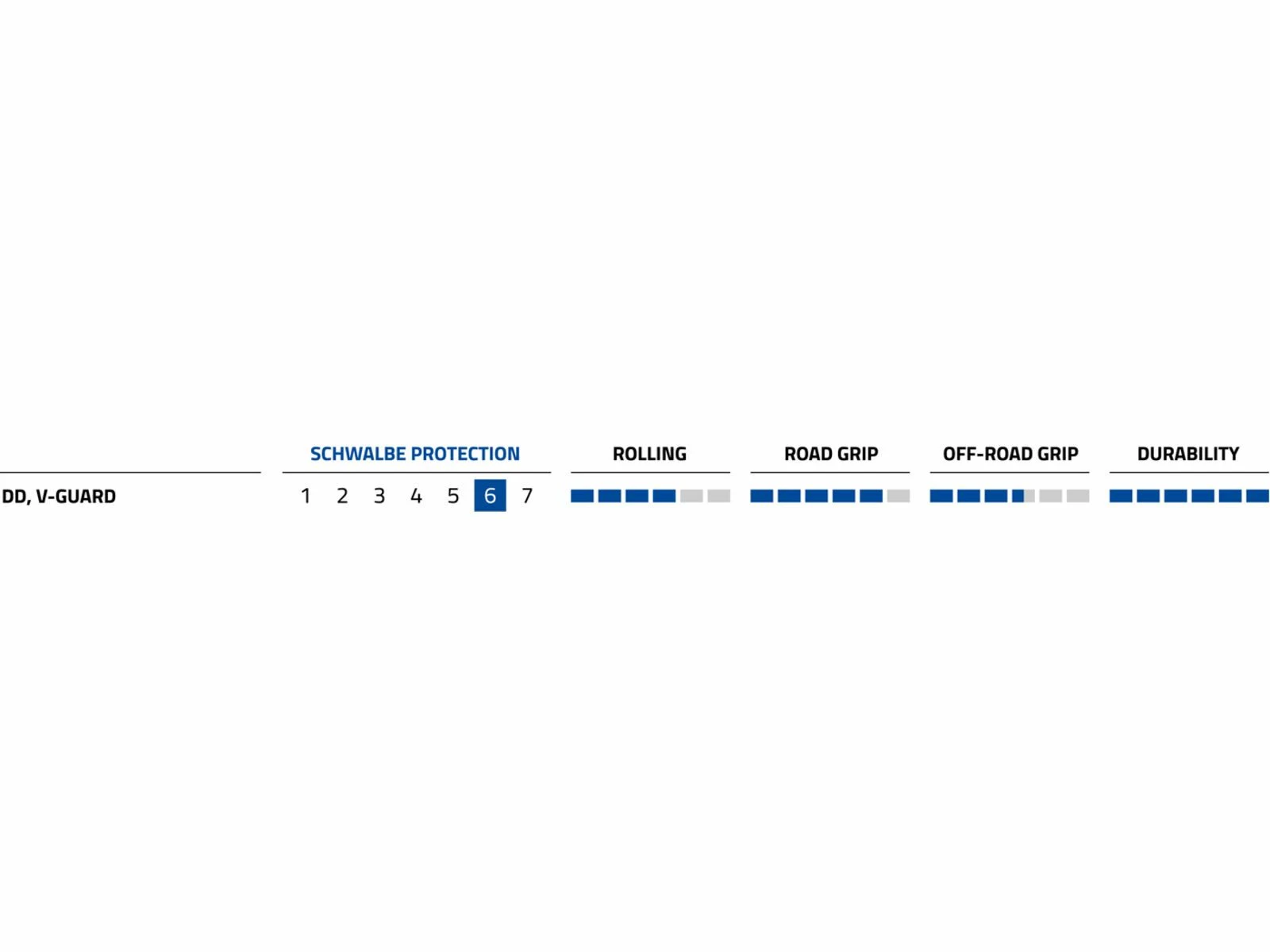 - Double Defense, V-Guard Der kombinierte Pannenschutz. Extrem leichte und schnittresistente Hightech-Faser unter der Lauffläche und SnakeSkin-Gewebe an den Seitenwänden. Äußerst sicher.