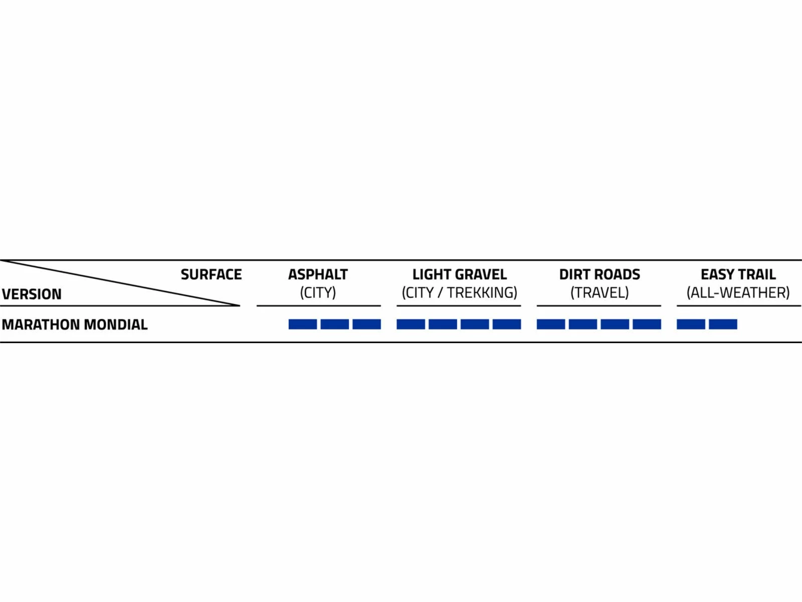 Der Schwalbe Marathon Mondial – der ultimative Reise-Reifen, gemacht für die Straßen, Pisten, Pfade aller Kontinente. Das Profil orientiert sich bewusst am Vorbild des legendären Marathon XR. Konstruktion und Compounding sind natürlich aktuellste Schwalbe-Evo-Technologie. Double Defense Technik macht die leichte, aber gleichzeitig extrem robuste Konstruktion möglich. Die Welt ist rund. Erlebe es.