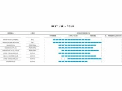 - Endurance: die Marathon-Gummimischung für höchste Haltbarkeit, rollt Tausende Kilometer mit hervorragenden Fahreigenschaften und geringem Abrieb