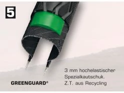 - GreenGuard: 3 mm starke, grüne Pannenschutzeinlage aus Naturkautschuk unter der Lauffläche, hochelastisch und zu einem Drittel durch Recycling gewonnen