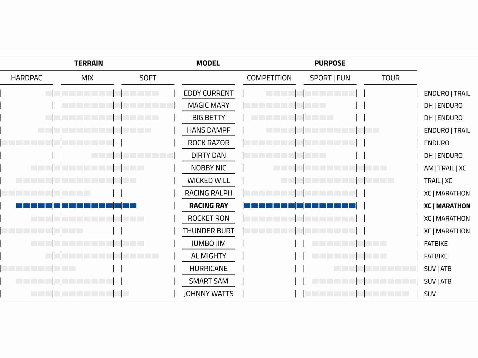 Schwalbe Racing Ray – der Vorderradspezialist. Das extra aggressive XC Profil gepaart mit dem Addix Speed Compound macht Racing Ray zur XC-Waffe und genialen Ergänzung von Racing Ralph. Versetzte Mittelstollen sorgen für präzises Lenkverhalten gepaart mit hoher Bremsleistung. Präzises Lenkverhalten durch stabile Schulterblocks. Sehr leises Abrollverhalten und ausgezeichneter Rollwiderstand.