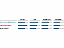 - Super Ground: 3 Karkassenlagen; mit SnakeSkin Pannenschutzeinlage von Wulst zu Wulst und Chafer-Einlage im Kontaktbereich Felge-Reifen für die Abdichtung im TLE-Betrieb