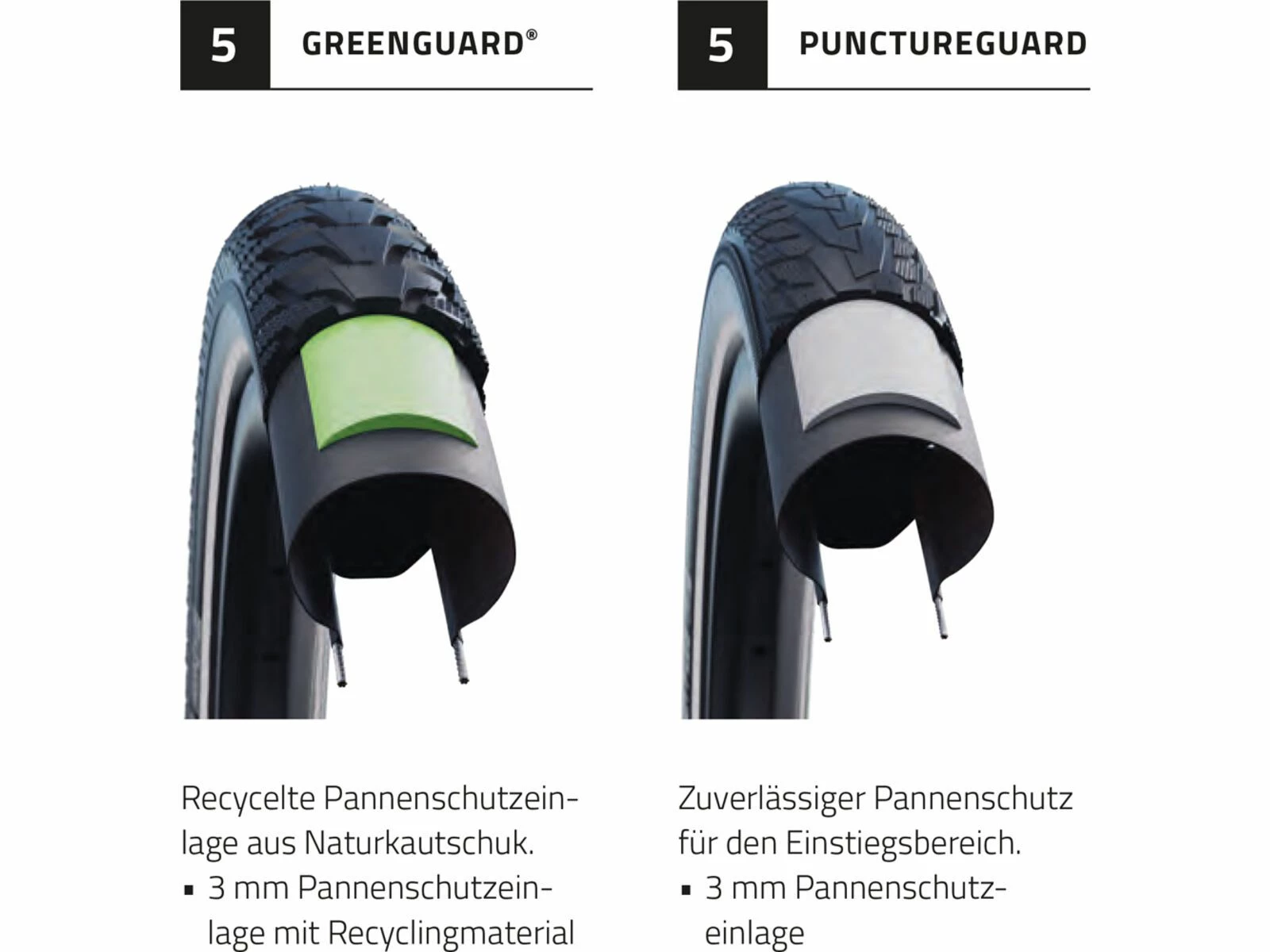 Für noch mehr Sicherheit und eine längere Lebensdauer wird der Road Cruiser mit Green Compound in der Plus-Variante durch den äußerst effektiven 3 mm starken PunctureGuard Pannenschutz geschützt.