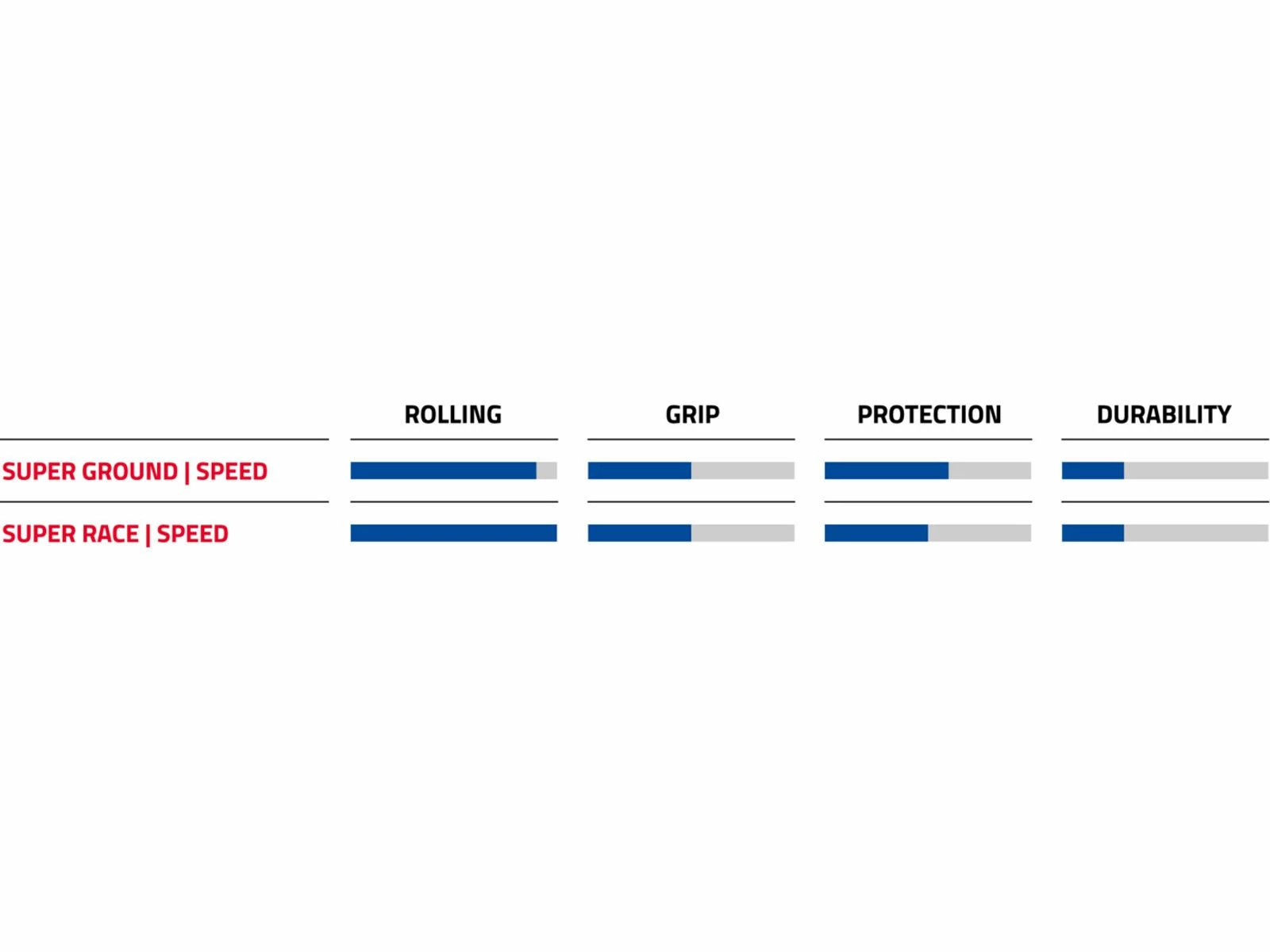 - Super Ground: Vereint Leichtigkeit und Stabilität. Fühlt sich in jedem Gelände Wohl. Ausgewogenes Verhältnis von Pannenschutz und Leichtlauf. Für flowige Trails, lange Touren und jeden Untergrund. Die moderne, ausgereifte Konstruktion garantiert Fahrern eine optimale Synthese aus Schutz, Leichtigkeit und optimalen Laufeigenschaften. Die schützende, von Wulst zu Wulst verlaufende, Gewebeeinlage und drei Karkassenlagen unter der gesamten Lauffläche sorgen für ein ausgewogenes Verhältnis von Sicherheit und Gewicht. Tubeless Easy