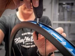 Der Ventilfuß kann mit dem Innensechskantschlüssel fest in die Felge montiert werden, ohne zu überdrehen. Der verkürzte Konus sorgt für eine geringe Einbauhöhe und dadurch für mehr Platz für die Reifenwülste. Dank des großen Ventil-Innendurchmessers kann der Reifen besonders effektiv mit Luft und Dichtmilch befüllt werden.