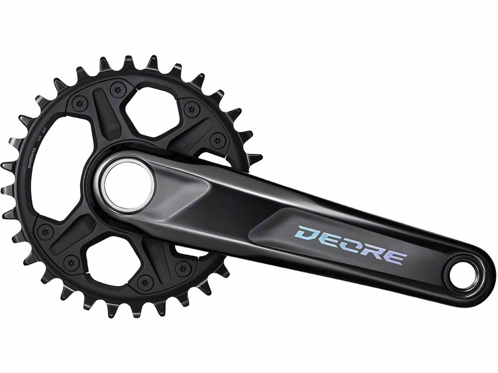 Die Shimano Deore FC-M6100-1 Kurbel ist komplett neu konstruiert und verfügt über direkt montierte Kettenblätter, spezielle Zahnprofile für besseren Halt der Kette und einen Q-Faktor von 172 mm, der mit 142 mm oder 148 mm Rahmeneinbaubreite kompatibel ist.