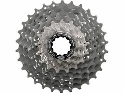 Die Shimano Dura-Ace R9100 11-Gang Rennrad-Kassettenzahnkranz hat einen Kurbelstern aus Carbonfaser in Aluminium und einen 5 Ritzel aus Titanium. Sie bietet eine präzise und leichtgängige Schaltung für die anspruchsvollsten Rennradfahrer der Welt.