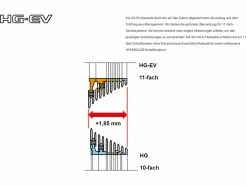 - empfohlene Kette: HG-X 11-fach, HG-EV 11-fach