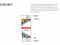 - empfohlene Kette: HG-X 11-fach, HG-EV 11-fach