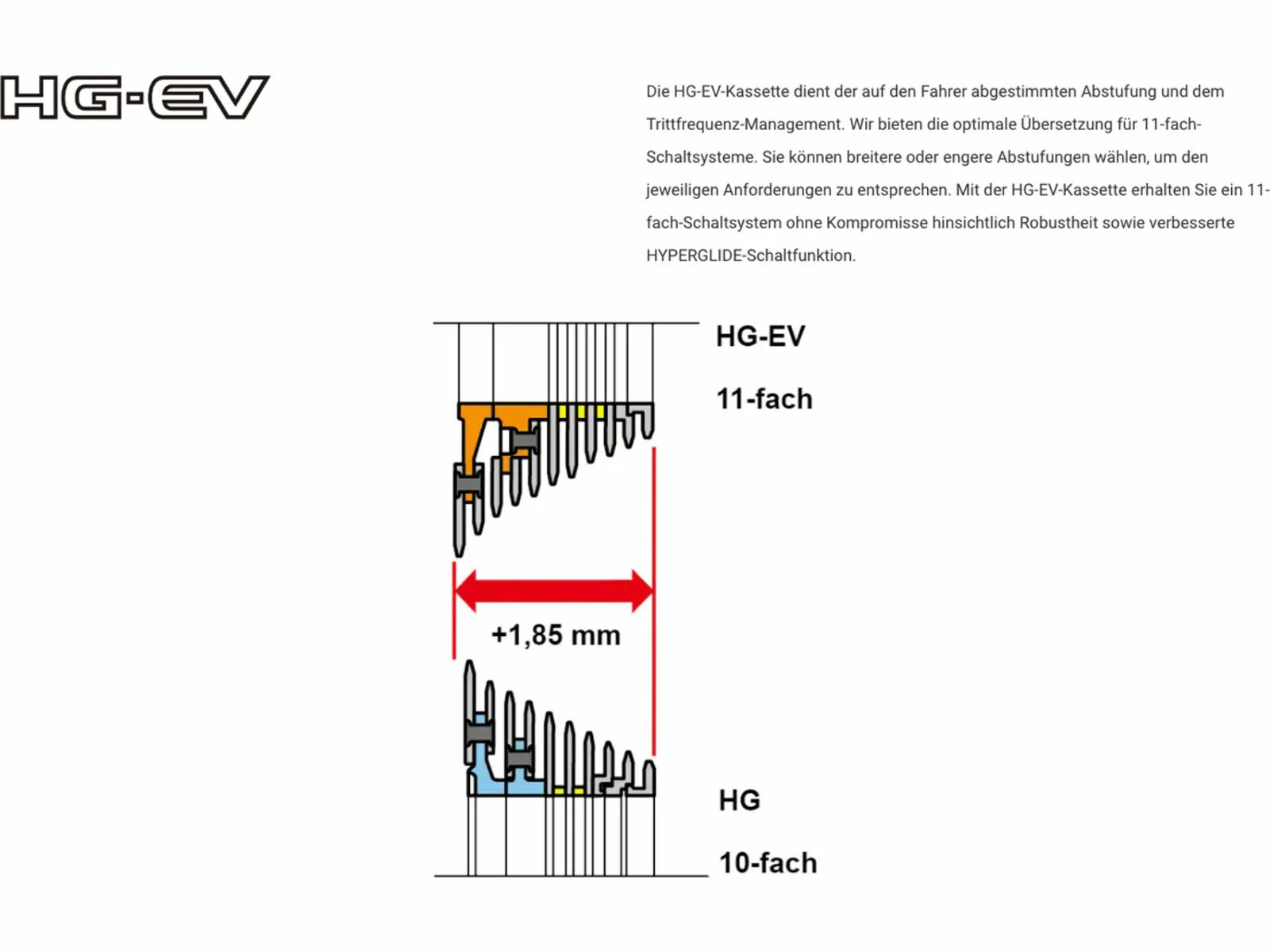 - HG-EV: 11-fach-Schaltsystem ohne Kompromisse hinsichtlich Robustheit sowie verbesserte Hyperglide-Schaltfunktion