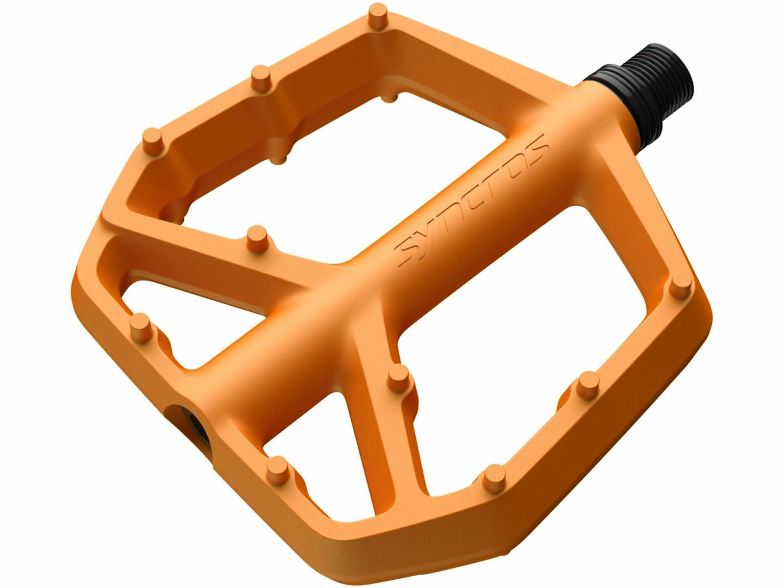 Die preisgünstigen Flat-Pedals, die Syncros Squamish III, verfügen über einen Pedalkörper aus Nylon mit gedichtetem Lager und geformten Pins. Die breite Grundfläche unterstützt den Fuß und sorgt für bestmögliche Stabilität.