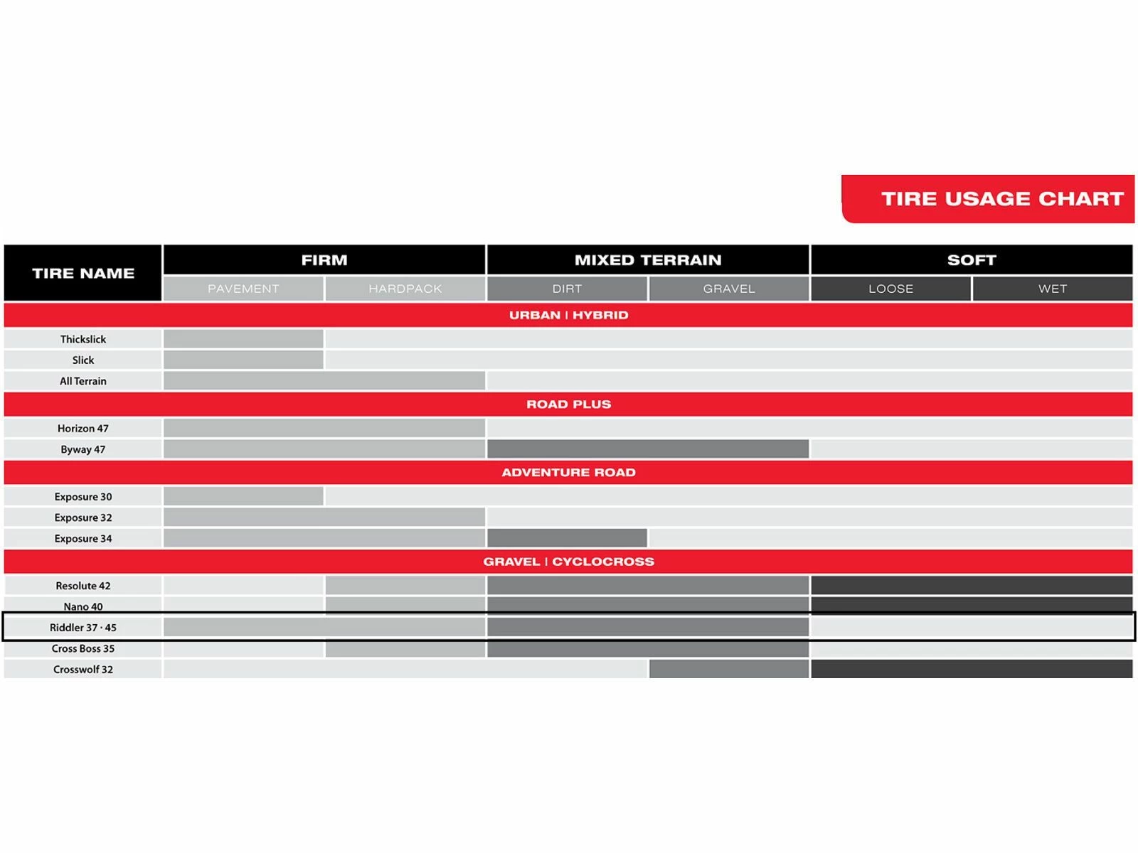 Du brauchst einen Reifen, der deine Beine stundenlang im Spiel hält, während du gelassen durch Kurven fahren kannst. Der WTB Riddler TCS Light/Fast Rolling ist das Ergebnis aggressiver Kurvennoppen, die auf ein schnelles Mittelprofil treffen, was zu einem Reifen führt, der die Geschwindigkeit in der Geraden auch in die Kurven trägt. Der Riddler 37C ist genauso bereit für den lokalen Crosskurs wie für eine einsame Gravel-Strecke. Der Riddler 45C wurde für eine gleichbleibende Geschwindigkeit unter den unterschiedlichsten Bedingungen entwickelt und bietet dem Fahrer, der sich auf den unwegsamsten Straßen befindet, zusätzlichen Fahrspaß. Der WTB Riddler ist unglaublich vielseitig und wächst aus sich heraus, wenn du ihn an einem Bike mit Dropbar aufziehst.Einsatzbereich & Bedingungen